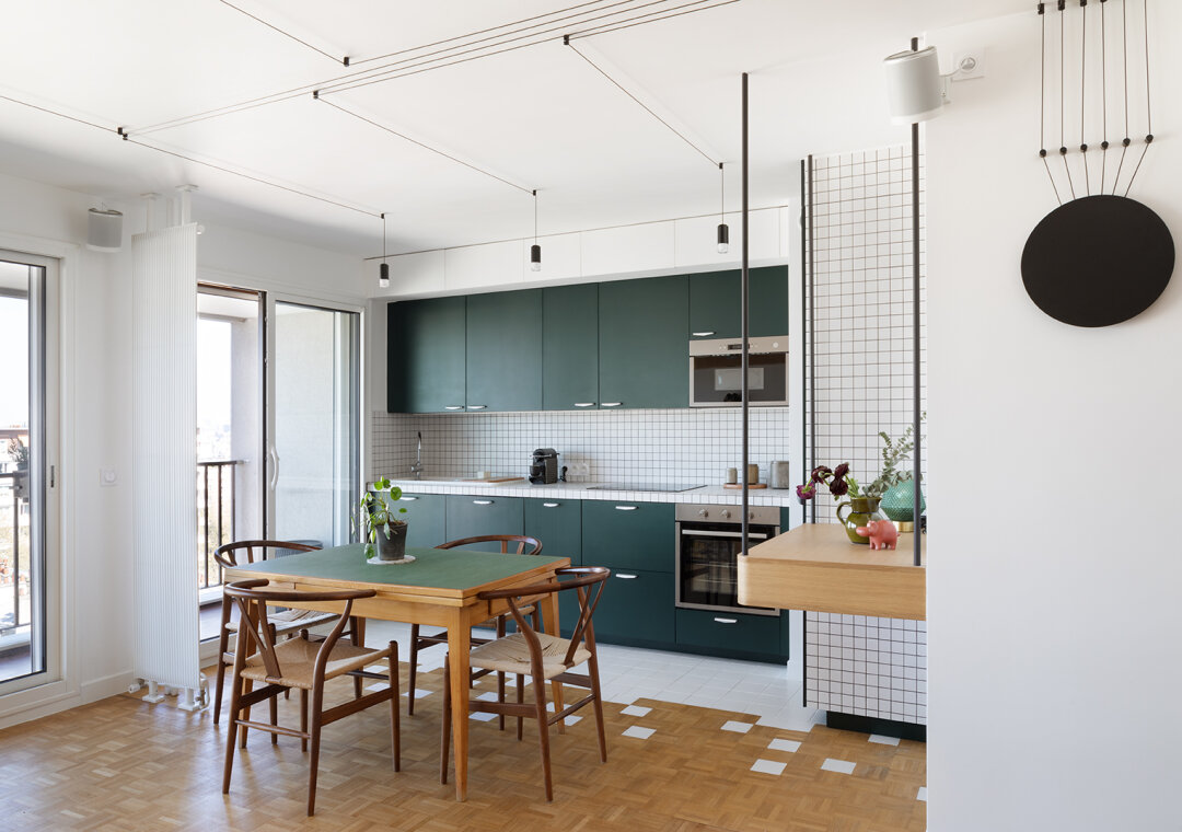 Rénovation d'une maison individuelle: cuisine, salle à manger et terrasses