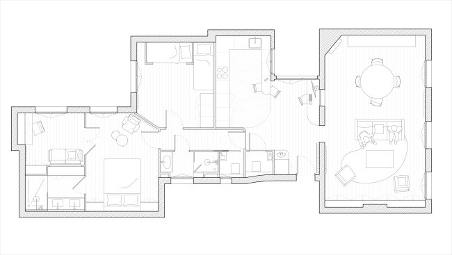 titre. Rénovation complète d'un appartement Parisien date. 2021 ville. Paris 75017 description. En plein coeur de Paris, dans un bâtiment Haussmannien, Rénovation complète d'un appartement de 120 m2 avec création de mobiliers sur mesure état. Livré Budget. non communiqué Crédits photographies : Agathe Tissier
